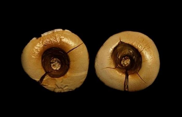 Скорее всего, он был сделан из камня, которым расширяли полость, соскабливая сгнившие ткани зуба. В следующем зубе также нашли знакомую технологию — остатки пломбы. Она была сделана из битума, смешанного с растительными волокнами и волосами. Если использование битума (натуральной смолы) понятно, то зачем добавляли волосы и волокна — загадка.
