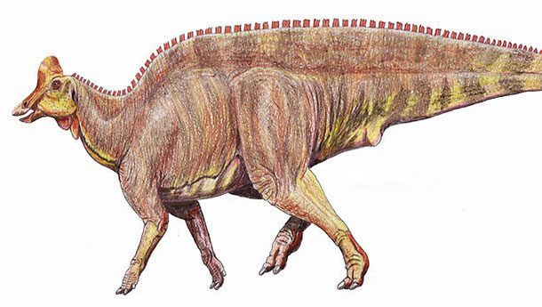 Магнапаулия относится к виду гадрозавров, или утконосых динозавров. Этот пятнадцатитонный 25-метровый зверь, несмотря на свой размер, невероятно быстро мог перемещаться на задних ногах по равнинам Северной Америки.