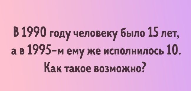 Этот человек жил до нашей эры. Следовательно, в 1995 году до нашей эры ему было 10 лет, а в 1990-м исполнилось 15.