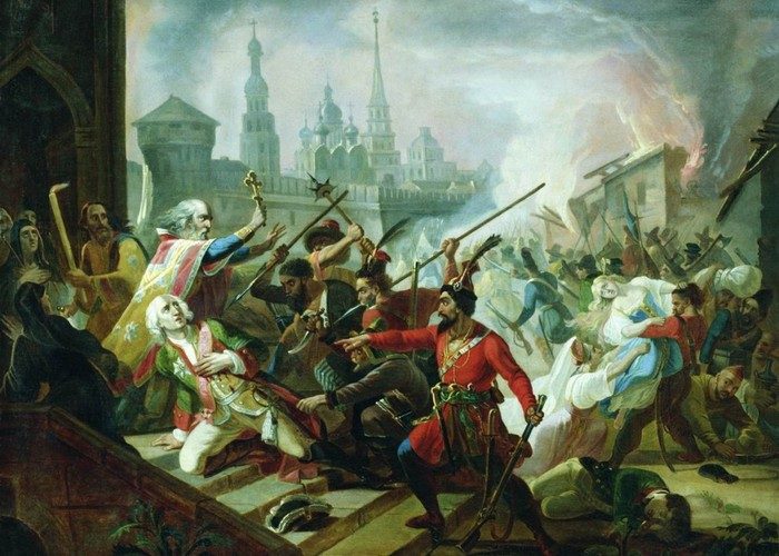 Картина «Пугачевщина». Художник: С. МолодыхНедавно стала известна уж совсем невероятная история о пугачевском сокровище. Один из жителей Южного Урала обратился в СМИ за помощью. Как он утверждает, ему удалось отыскать место «захоронения» клада Емельяна Пугачева. Исследователь нашел в архивах упоминание, что около его города (Пласта) в лесах был оборудован тайник. В нем были сокрыты немалые церковные ценности и экспроприированные у дворян драгоценности.