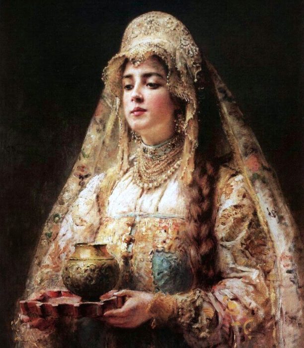 Существовала особая «мода» на невест, и чтобы дождаться сватов, желательно было ей соответствовать. Первое, что оценивали в любой девице на выданье, — пышнотелость. На Руси писанной красавицей считалась широкобедрая и полнотелая женщина. О таких еще говорили, что они «пышут здоровьем». Страсть к лишним сантиметрам на бедрах легко объяснялась с практической точки зрения. В эпоху, когда медицина находилась на очень низком уровне, широкие бедра считались своеобразной гарантией того, что женщина сможет выносить и легко родить ребенка. К тому же излишняя худоба часто вызывала подозрения в серьезных проблемах со здоровьем. А обзаводиться заведомой больной и неспособной много работать женой никто не спешил.