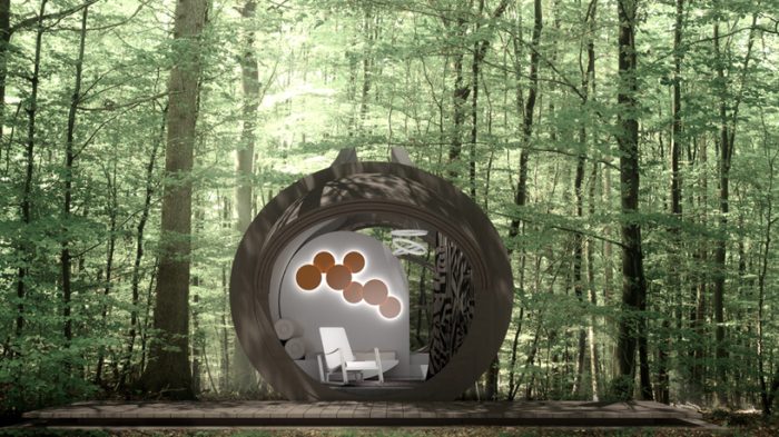Эта постройка представляет собой однокомнатную капсулу которую можно «десантировать» в любой уголок Земли, даже самый дикий. Например, на скалистый берег или в лесистые горы.