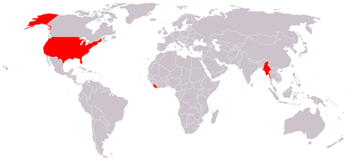 Красным цветом отмечены регионы, не использующие метрическую систему как основную.
