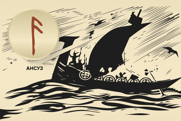 Значение «бог» имеет и древнегерманская руна ᚨ (ансуз). Кстати, по одной из версий, этот знак из алфавита викингов произошел от «А» из латиницы. То есть является дальним родственником финикийского «алп». В алфавите викингов ансуз стоял на четвертом месте, а на первом — руна ᚠ (феху), имевшая значение «скот»: почему-то в том, что начинать надо именно с быков, древние были солидарны. Такие приоритеты.