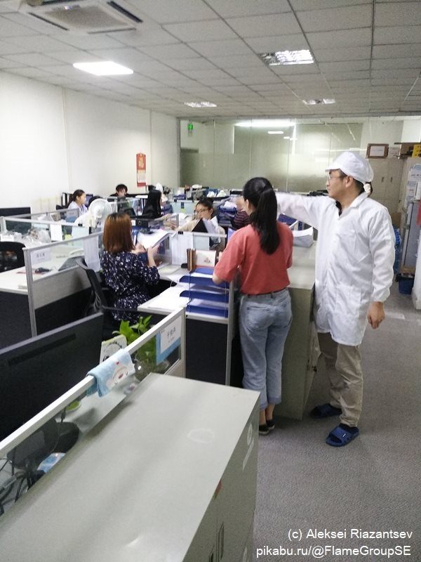Это мои любимые сооружения – пыленепроницаемые кабинки. В них сидят сотрудники, которые работают с дорогими компонентами, чувствительными к пыли. Так как фабрика специализируется на производстве влаго/пылезащищённых устройств, соблюдать стандарты чистоты очень важно.