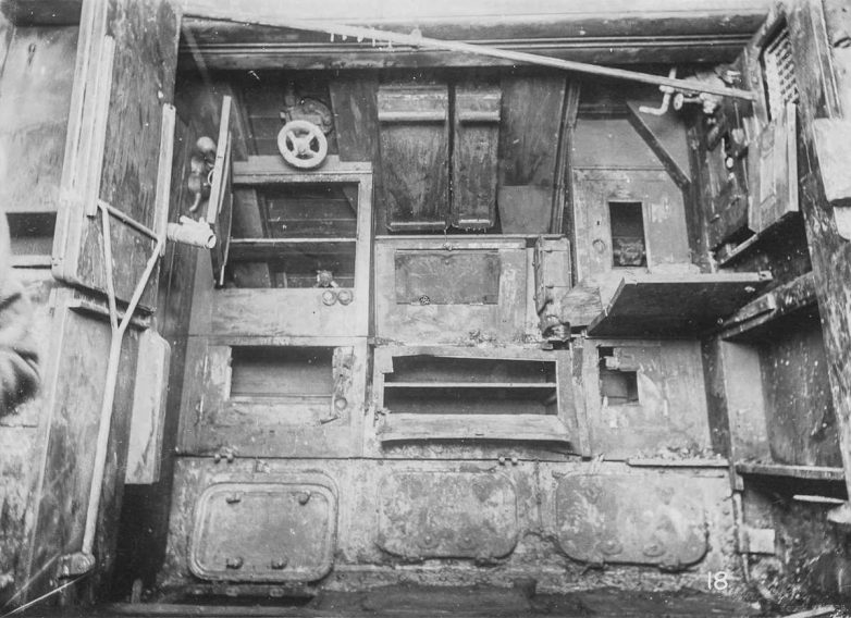 Эти фотографии ее необычайно тесного и сложного интерьера были сделаны до перемирия 11 ноября 1918 года, после чего она была полностью демонтирована и продана в качестве металлолома.