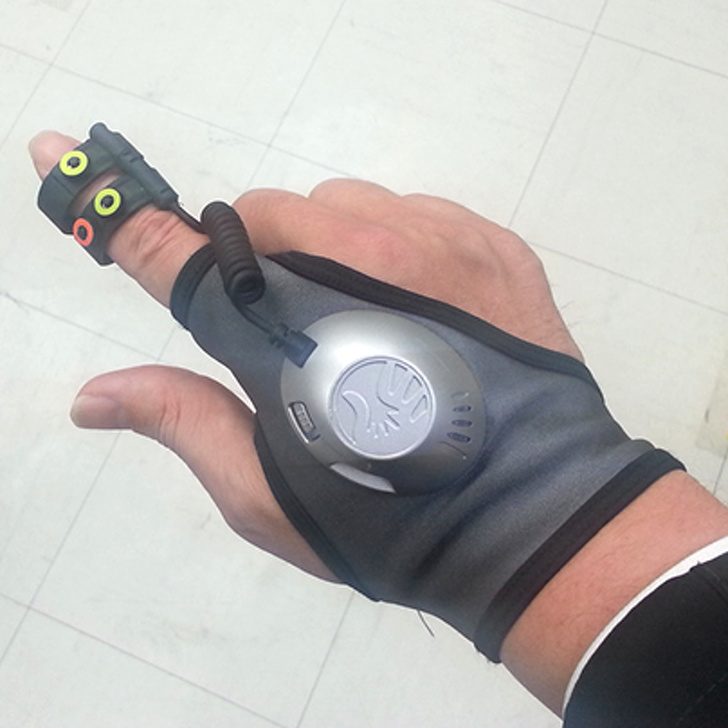 Вот такая перчатка призвана заменить привычную всем мышь для компьютера. Левый и правый клик, как и курсор, расположены на кончике пальца. Если устройство не подведет со скоростью реагирования, то станет незаменимым гаджетом для геймеров.