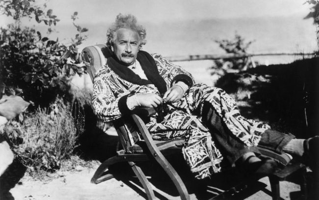 Почему же мы до сих пор восхищаемся Эйнштейном, пытаемся его цитировать и даже придумывать за него цитаты? Ответ будет таким же разносторонним, сложным и уникальным, как и этот человек, как и его жизнь, но он будет несомненно связан с научным гением Эйнштейна. Есть смешной анекдот про Эйнштейна, которого застали в конце 1930-х годов во время акта осмысления, рассказанный одним из его ассистентов по физике, Банишем Хоффманном: