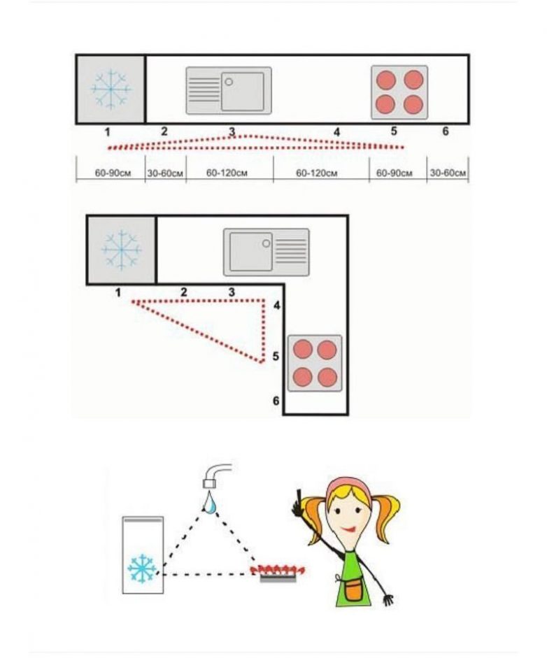 1. Холодильник (зона хранения)2. Место, куда можно максимально оперативно (желательно не делая при этом шагов, поворотов, наклонов и т.п.) поставить то, что только что достали из холодильника.