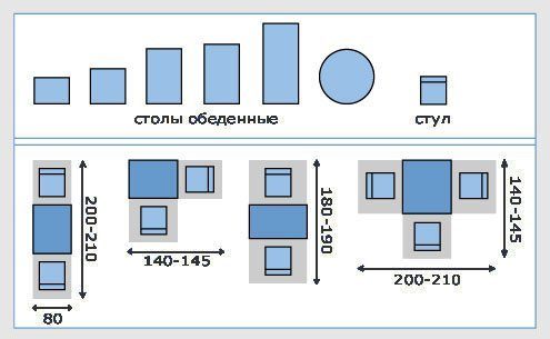 Начнем с мебели. Расстановка обеденных столов