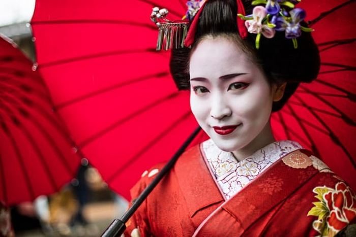 Когда речь заходит о гейшах, многие представляют девушку в изысканном кимоно с украшениями в волосах и лицом, покрытым белой краской. На самом деле они выглядели совсем не так. Гейши наносили краску на лицо только по особым случаям. А обычно они носили гораздо более скромный макияж, чтобы не слишком отличаться от остальных женщин.