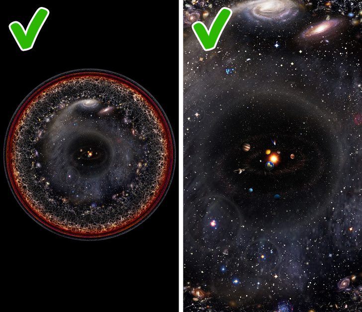Итак, представим, что мы достигли пределов нашей Вселенной, и нашему взору открывается… никто не знает, что именно. Более того, на сегодняшней момент единодушия в вопросе о существовании границ Вселенной у ученых не существует, но многие сходятся во мнении, что она конечна и бесконечна одновременно. Как это? Представьте себе путника, который идет по поверхности Земли — он никогда не достигнет ее границ, а просто рано или поздно вернется к исходной точке своего путешествия.