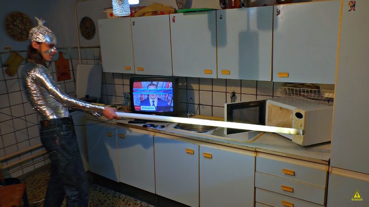 Микроволновое излучение может создавать помехи в работе микросхем (что приводит к поломке телефонов), сжигать диски и даже включать лампочки. На организм человека оно воздействует тоже негативно, поэтому от микроволновки, лишенной должной герметизации (железного полного корпуса) лучше держаться подальше.