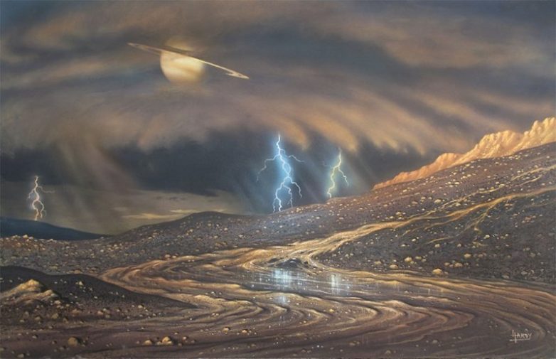 Титан — крупнейший спутник Сатурна. Он почти в полтора раза больше Луны и на нём даже есть жидкость. Только это не вода, а метан. В азотной атмосфере по небу Титана плывут метановые облака, идут дожди и реки текут по адски холодной планете. Зато такая плотная метановая атмосфера даст защиту от солнечной радиации. Да и давление не сильно отличается от привычного нам. С солнечным светом тут, правда, проблема, но зато метана — отличного, готового топлива — сколько хочешь. Жги да грейся.