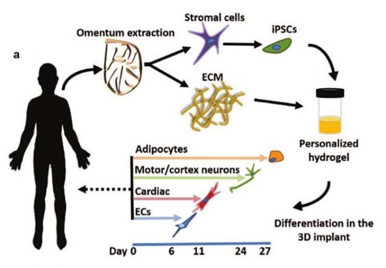Примечательно то, что данный метод позволяет исследователям спроектировать любой тканевой имплантат из небольшой биопсии жировой ткани. И чтобы это сделать, они сначала изолировали клетки от тканей пациента, после чего учёные «перепрограммировали» их, чтобы сделать из них индуцированные плюрипотентные стволовые клетки — «клетки-хозяева», которые способны развиваться во все тканевые клетки в организме человека. Затем внеклеточный материал от биопсии был преобразован в персонализированный гидрогель. В результате с этих двух основных компонентов ученым успешно удалось изготовить персонализированные образцы тканей.