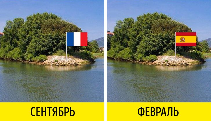 Этот остров посреди реки Бидасоа полгода принадлежит Испании и еще шесть месяцев — Франции. Администрации поочередно сменяют друг друга. Так продолжается уже более трех столетий.