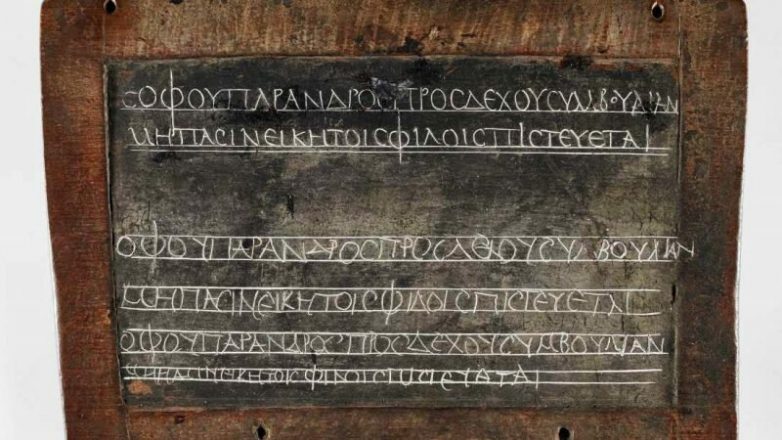 Восковая табличка в деревянной рамке, относящейся к Египту 2-го века нашей эры, который тогда находился под контролем Римской империи, демонстрирует древний урок, который задавался детям младшего школьного возраста 1800 лет назад. И хотя на табличке нет имени, отчего личность ученика неизвестна, в те времена образование практически повсеместно на территории Египта предоставлялось мужчинам, и в основном из богатых семей.