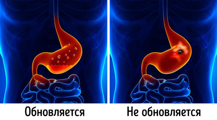 Желудочная кислота настолько сильна и концентрирована, что может переварить сам желудок. Чтобы защитить себя, каждые 3–4 дня он восстанавливает свой внутренний слой. Желудочная кислота может растворить даже лезвие бритвы (но глотать его — по-прежнему плохая идея). Когда разрушительное действие агрессивных факторов на слизистую желудка преобладает над защитным, у человека может развиться язва.