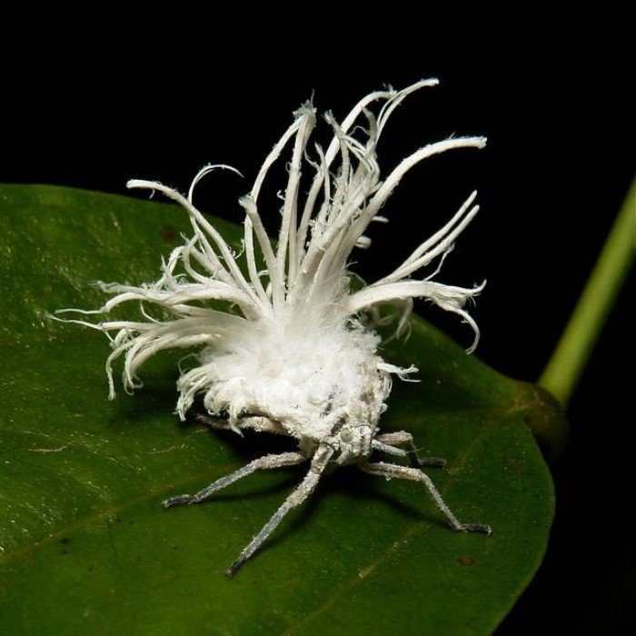 Дельфациды, свинушки или planthoppers. Безумные насекомые украшающие собственный зад воском. В общем эти причудливые узорчатые дрэды и кружева — анальный трубчатый воск небольших цикад. Процесс украшения связан с необходимостью вторгаться своим ротовым аппаратом в клетки растений, где малокалорийный сок содержится под давлением. Чтобы задержать сок внутри себя и его переварить насекомое вырабатывает аналог воска, а так как пищи всё равно много и в пищеварительном тракте так же есть давление — фекалии иногда резко выходят вместе с воском и принимают разные формы. У каких то видов — жиже и не так красочно. Есть виды которые украшают не себя, а всё вокруг. Например вашу машину, если вы китаец и поставили её близко к кустам.