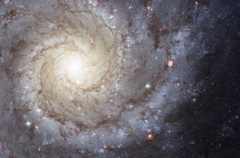 Спиральная галактика NGC 3344, расположенная на расстоянии около 20 млн световых лет от Земли в созвездии Малого Льва. Она в два раза меньше нашей собственной галактики Млечный Путь © ESA / Hubble, NASA