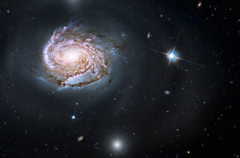 Галактический гибрид. Галактика UGC 12591 классифицируется как галактика S0 / Sa, это нечто среднее между линзовидной и спиральной галактиками. Она находится на расстоянии около 400 млн световых лет от нас и невероятно массивна — в четыре раза больше массы нашего Млечного Пути. Вдобавок она и вращается быстрее всех известных — около 500 км/с, что в два раза больше, чем у нашей галактики © ESA / Hubble & NASA