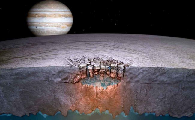 В ходе многочисленных миссий к спутнику Юпитера Европе было высказано предположение о том, что под толстым слоем льда луны может находиться незастывший океан, а это значит, что потенциально там может иметься жизнь или хотя бы свидетельства ее присутствия в прошлом.