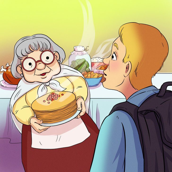Грустно, но некоторым бабушкам выпало жить далеко не в самое мирное время. Они видели смерть от голода во время войны, да и в мирное время жизнь в СССР не была изобильной. Это отпечаталось в их сознании навсегда. И счастье для них — это когда все дома и хорошо поели. Поэтому не стоит злиться на свою бабушку за желание вас накормить во что бы то ни стало.