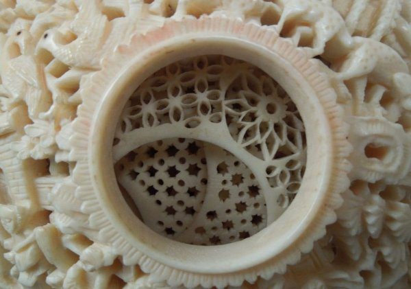 Настоящей жемчужиной среди прочих шедевров, выполненных из слоновой кости, признаны «решетчатые шарики внутри шариков». Первым шагом в изготовлении этого чуда является превращение куска кости в идеальный шар, после чего в нем на необходимом расстоянии просверливаются несколько отверстий конической формы, чьи вершины сходятся точно в центре шара. Затем мастер с помощью линейки отмечает в каждом отверстии, сколько шариков он хочет выгравировать внутри первого. Теперь он может приступать непосредственно к вырезанию шариков, начиная с лежащего в самом сердце будущего «решетчатого шарика». Мастеру приходится полагаться лишь на собственное чутье, годы опыта и острое лезвие своего резака, т. к. проделанные отверстия не позволяют ему видеть, что происходит внутри шара. Все последующие шарики также вырезаются изнутри. При этом ошибись мастер хоть на волосок – и вся работа пойдет насмарку.