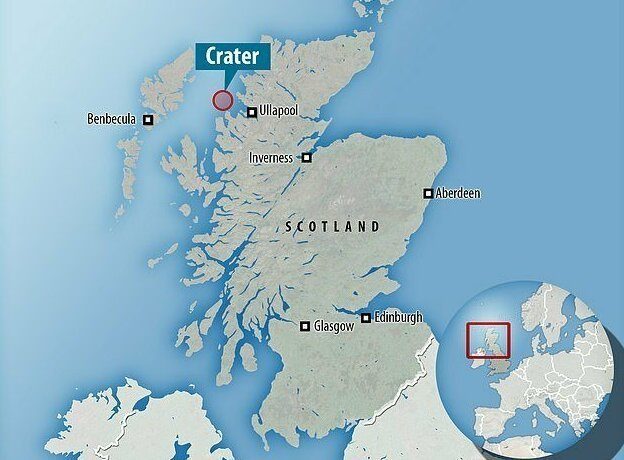 15-километровый кратер обнаружили ученые недалеко от северо-западного побережья Шотландии, в заливе, отделяющем город Льюис от Северо-Шотландского нагорья. По мнению экспертов, этот кратер был оставлен метеоритом диаметром около 1,5 километров, упавшим около 1,2 миллиарда лет назад. Ученые уже назвали его «самым большим кратером в британской истории». По оценкам ученых, метеорит весил около 13 миллиардов тонн и врезался в Землю со скоростью порядка 60 000 километров в час, вызвав взрыв, эквивалентный 940 миллионам бомб, упавших на Хиросиму. Лишь то, что кратер оказался на дне океана, помешало ученым обнаружить его раньше. Впервые о его наличии исследователи догадались 11 лет назад, однако лишь сейчас им удалось определить его точное местонахождение. Он находится под водой, между Гебридскими островами и Северо-Шотландским нагорьем, примерно в 20 километрах от берега.