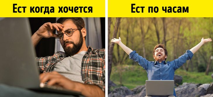 Медикам известно, что ночной режим работы приводит к хроническому сбою циркадного ритма, что значительно повышает риск развития сердечно-сосудистых заболеваний и возникновения диабета 2-го типа. Специалисты из Кембриджского и Манчестерского университетов выяснили, что и режим питания может стать причиной поломки внутренних часов: это происходит, когда человек ест в непривычное для себя время. Эксперименты показали, что если так питаться, то циркадный ритм нарушается и организм перестает различать день и ночь, что наносит огромный ущерб здоровью.«Тем, кто работает по ночам, следует стараться принимать пищу при естественном дневном освещении», — советует автор исследования Прийя Кросби.