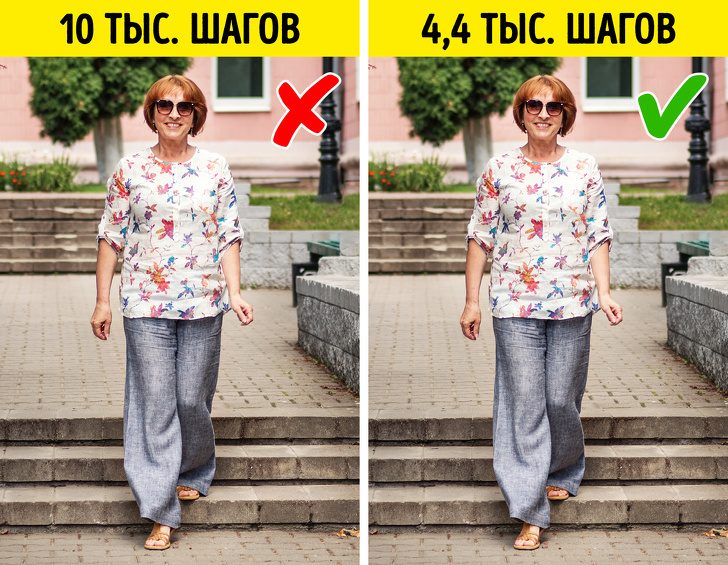 Можно и больше, но положительная тенденция уже не такая выраженная, а после 7,5 тыс. шагов вообще не меняется. Стоит отметить, что эти выводы справедливы по отношению к пожилым американкам. Сколько шагов в день нужно проходить более молодым людям, ученые пока не выясняли.