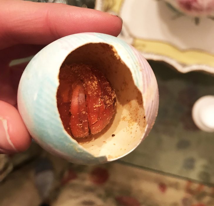 «Моя мама случайно уронила и разбила пасхальное яйцо, которое хранилось 20 лет. Оказалось, белок внутри высох, а желток окаменел»