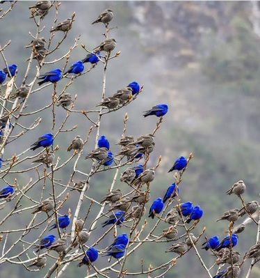 Это птицы вида индиговый овсянковый кардинал. Самцы — ярко-голубые, самки — коричневые