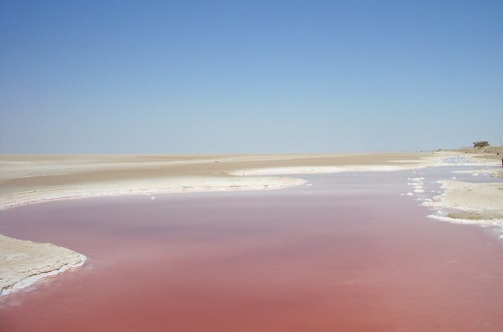 Озеро-солончак Эль-Джерид в Тунисе розового цвета, и его поверхность покрыта тонким слоем соли. Летом озеро высыхает и выглядит почти бесконечным, поэтому здесь часто случаются миражи. Согласно легенде, именно здесь родилась греческая богиня Афина, а местность возле озера послужила декорациями к фильму «Звездные войны».