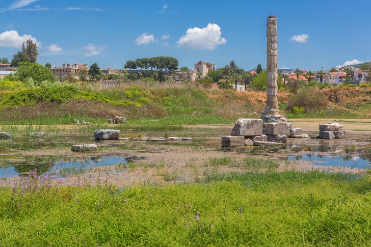 Жители Эфеса строили храм в честь богини плодородия Артемиды в течение 120 лет. Крышу сооружения поддерживали 127 колонн высотой по 18 м. Святилище было украшено рельефами, скульптурами и картинами, в центре располагалась статуя самой Артемиды. Помимо религиозных церемоний здесь активно проводились деловые мероприятия.