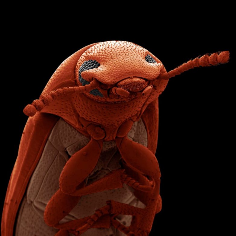 Этот маленький жук — вредитель в хранящихся зерновых и мучных изделиях.