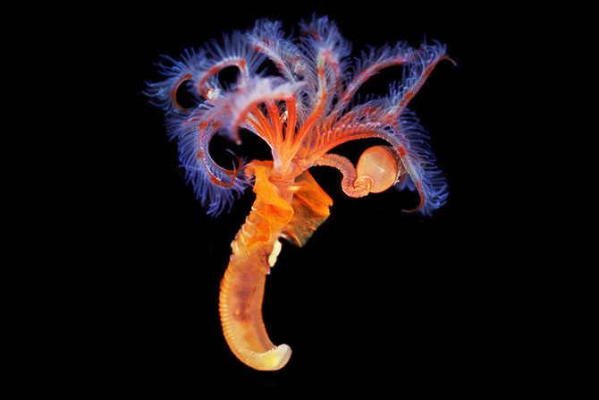 Эти снимки сделаны морским биологом и фотографом Александром Семёновым. С 2007 года он снимает подводных существ, и его работы показывают «увеличенный в размере» волшебный и движущийся подводный мир, который обычный человек не сможет увидеть невооружённым глазом, даже плавая в море.