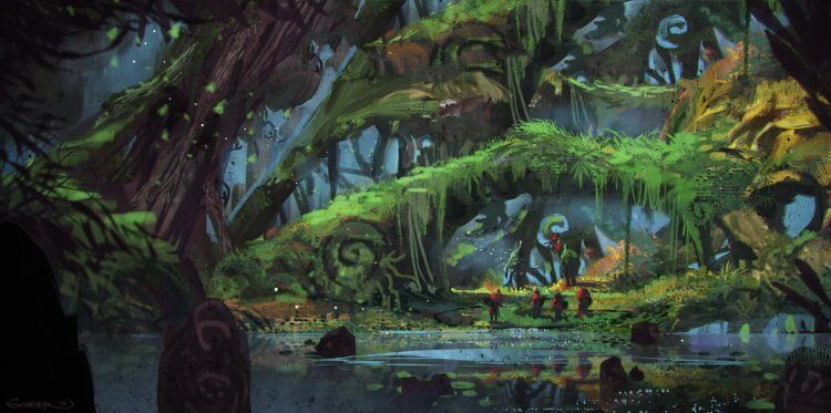 Среди них деревьев, формировавших лес того периода, как правило были плауновидные растения сигиллярии, достигавшие в высоту 20-25 метров. Или же деревья вида Guangdedendron micrum. Эти деревья чем-то напоминали пальмы высотой до 2 метров. Однако обнаруженный недавно лес выглядел не совсем так.Как говорят ученые, лес рос на побережье реки, которая часто «подтапливала» деревья. Поэтому местность тут была довольно болотистая. Помимо упомянутых уже пальмовидных Guangdedendron micrum, ученые обнаружили остатки древних морских лилий, рачков-конхостраков и древних рыб.