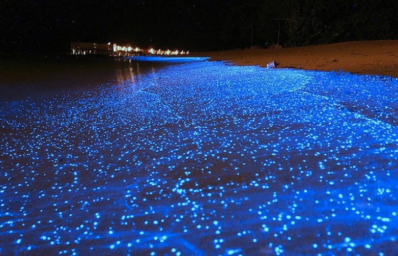 С наступлением темноты побережье атолла Вааду подсвечивается фантастическим голубым светом. Оригинальную подсветку создается фитопланктон. Под воздействие прибрежных волн они начинают светиться.