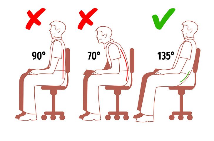 Если по какой-то причине вам трудно бегать, то это необязательно, достаточно лишь чаще ходить пешком. Оправдываться нехваткой времени неактуально: можно выходить или садиться на одну остановку раньше, на небольшие расстояния ходить только пешком, перестать пользоваться лифтом или проезжать на нем не весь путь. Вариантов масса, главное — не лениться.7. Сидеть слишком прямо плохо для спины