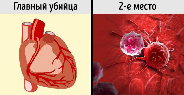 Обычно люди, не больные ни тем ни другим, гораздо больше боятся рака, чем проблем с сердцем, однако, как показывает статистика, риск умереть от болезней сердца намного выше. Но хорошая новость в том, что мы многое знаем о профилактике этих болезней: все та же активность, здоровая пища, отказ от вредных привычек и алкоголя.