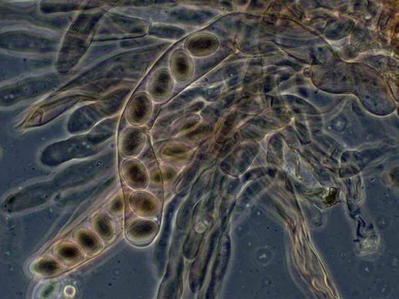 Такое гидростатическое давление в аске со спорами сначала расправляет его, а затем по мере испарения скукоживает обратно, создавая напряжение. Рано или поздно оболочка аски иссохнет настолько, что лопнет сама, и споры высвободятся. Ну или любопытный турист или туземец ткнет симпатичную чашечку во время полуденного зноя пальцем и запустит цепную реакцию механического отстрела тысяч спор в свою стремящуюся к познанию окружающего мира физиономию.