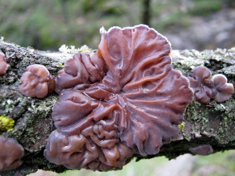 Дрожалка буковая — гриб вид рода Ascotremella, и, чтобы вы понимали его официальное описание, включает прилагательное «мозговидный». Розовато-сиреневая мякоть резиново-желеобразной формы и консистенции свежевываленных мозгов.