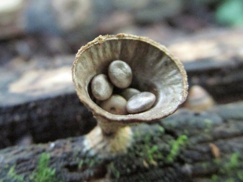 Гнезда чрезвычайно разнообразны по форме, размеру, цвету и количество видов удивит любого сумасшедшего грибника. Целых пять родов разнообразных поганок украшают гниющую древесину своими кладками. Будучи молодым, плодовое тельце, как и у большинства фунги, стремится к шарообразной форме, но по мере роста шляпка трескается, разваливается, и открывается чаша. Как и другие грибы, разрушающие древесину, жизненный цикл гнездообразных можно рассматривать как две функционально разные фазы: вегетативную стадию распространения и роста мицелия, и репродуктивную стадию. Собственно яйца-перидиолы — это заключительная часть процесса отрастания спорообразующих структур — плодовых тел, а их отстрел — последняя нота в этом удивительном действе.