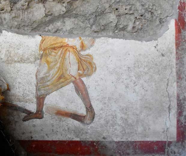 На левом углу рисунка археологи также нашли часть другой картины. Как и основная, она была нарисована на белом фоне и имела красную рамку. На ней нарисованы чьи-то ноги, но узнать полный сюжет рисунка археологам уже вряд ли удастся, потому что основная часть картины была уничтожена с течением времени.