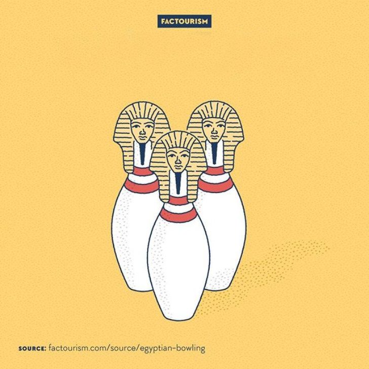 Боулинг был популярен в Древнем Египте еще 5 000 лет назад. Египтяне играли в него в большом зале, по два человека одновременно (каждый находился на конце 4-метровой дорожки). Один человек бросал большой мяч, а другой — малый.
