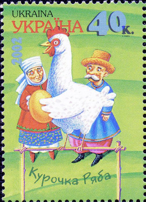 Почтовая марка Украины 2002 года «Курочка Ряба»