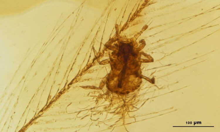 А это Дракула — кровососущий клещ, который пировал на динозаврах 99 млн лет назад. Исследователи обнаружили его в янтаре в 2017 году
