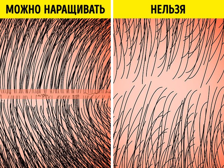 Часто девушки прибегают к наращиванию, чтобы добавить волосам густоты или скрыть их выпадение. Но это лишь усугубляет ситуацию, ведь тяжелые искусственные пряди пагубно влияют на корневую систему. Если с волосами все в порядке и вы всего лишь хотите сделать их длиннее, то наращивать можно, но не на долгий срок.