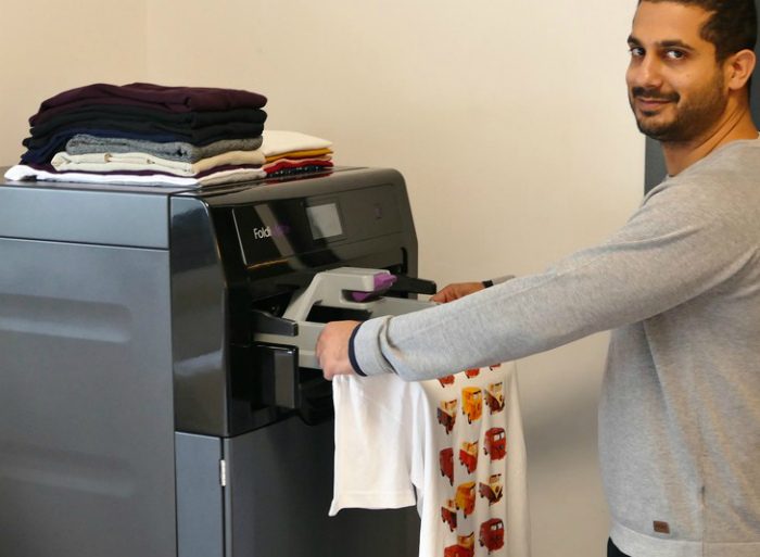 FoldiMate — это специальный автомат размером с маленький холодильник, предназначенный специально для складывания одежды. По данным производителей, устройство способно сложить 25 элементов одежды за 5 минут. Возможно, в бытовых условиях такая машина не приживется, но для небольших производств, а также магазинов одежды ее возможности очень ценны.